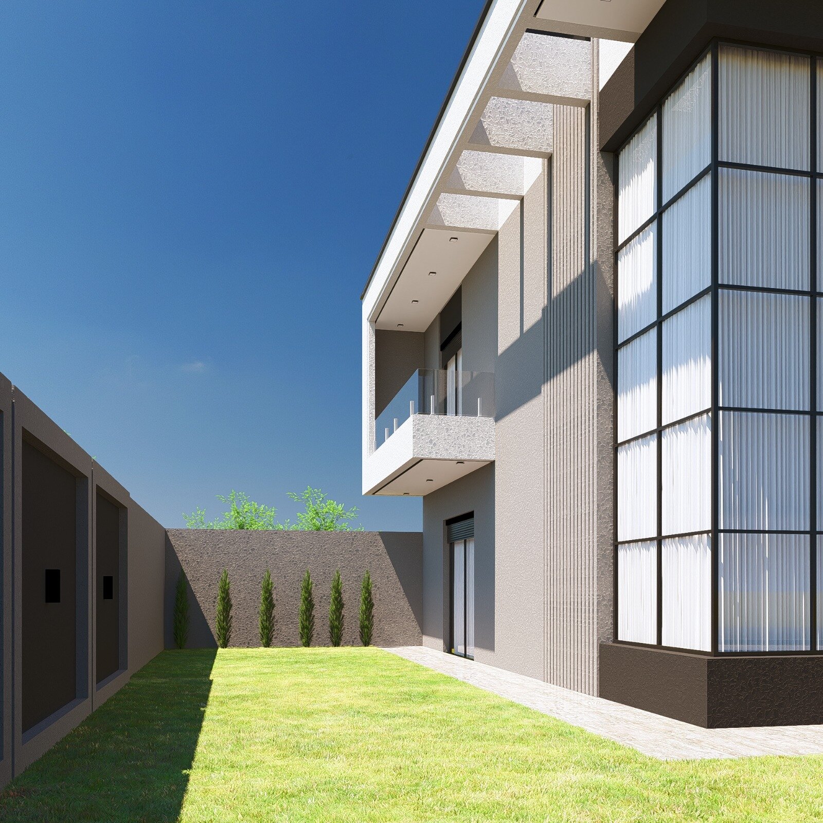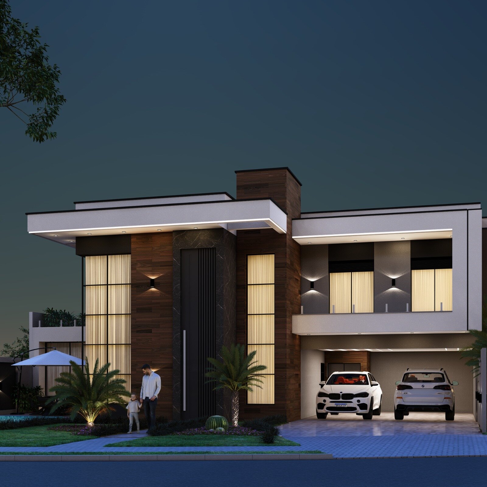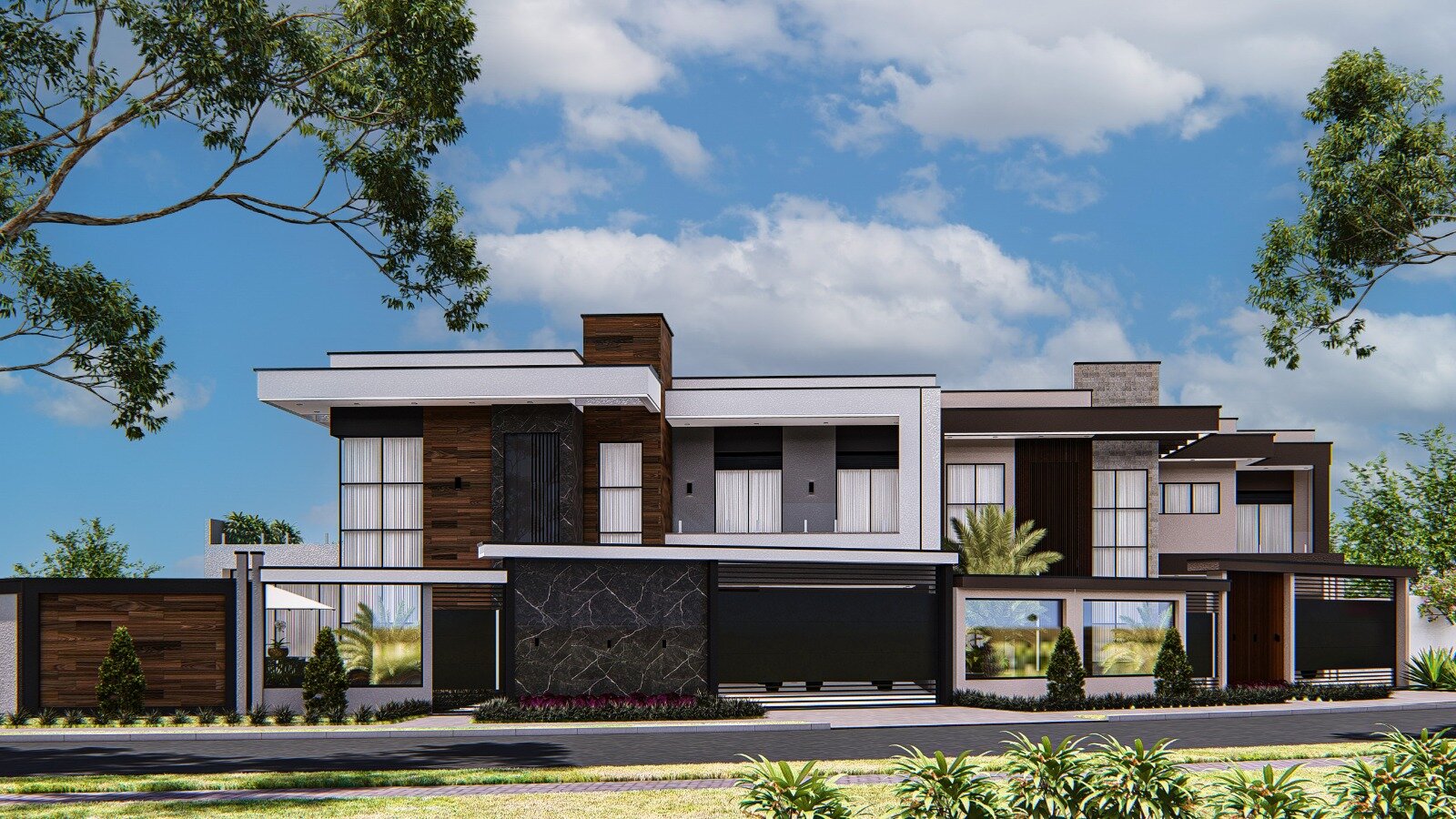 • Fachada moderna, com portão basculante e portão social
