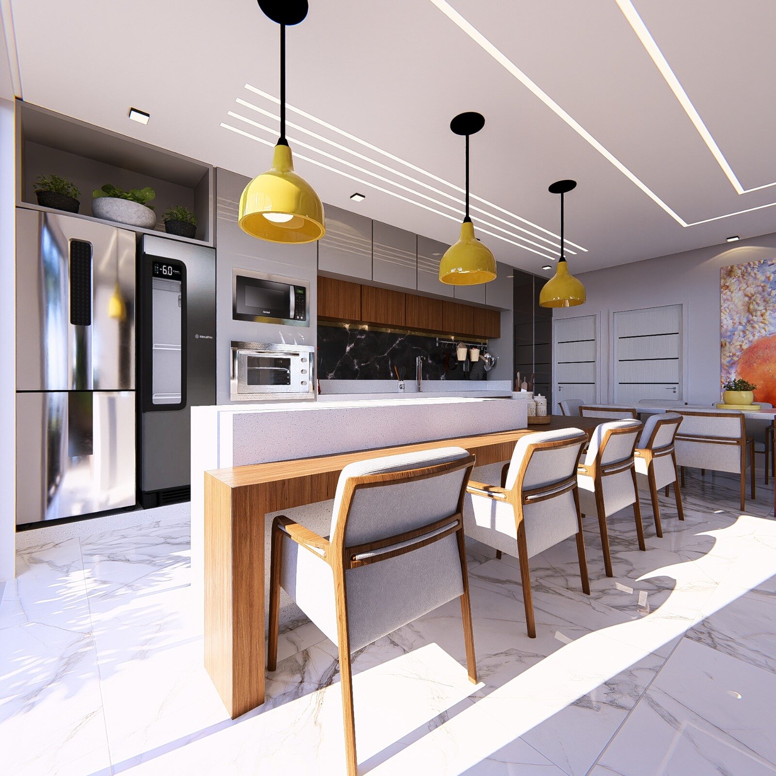 O projeto pode ser entregue com ou sem área gourmet integrada à cozinha — perfeita para quem ama receber amigos e família.